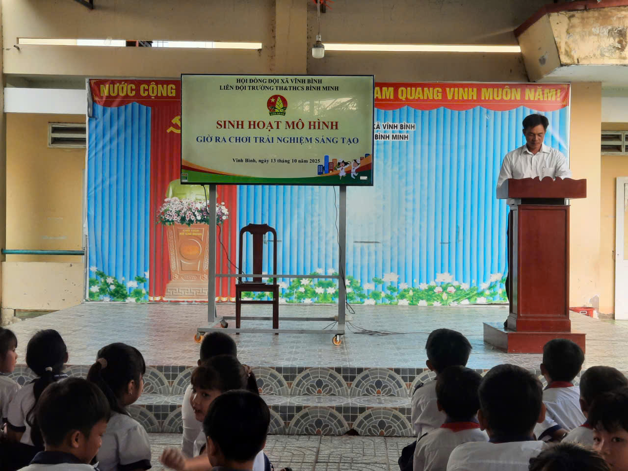 Thực hiện chương trình công tác Đội và phong trào thiếu nhi năm học 2025-2026; nhằm tạo môi trường để học sinh được trải nghiệm, khơi nguồn sáng tạo phát triển khả năng tư duy, ý tưởng sáng tạo của học sinh gắn với thực tiễn trong học tập, vui chơi của Đội viên, thiếu nhi. Ngay từ đầu năm học, Liên đội TH&THCS Bình Minh đã xây dựng kế hoạch và triển khai thực hiện có hiệu quả mô hình “Giờ ra chơi trải nghiệm sáng tạo”, để mỗi ngày đến trường của các em thật sự là một ngày vui. Với các nội dung thiết thực, mang tính trải nghiệm, sáng tạo đảm bảo được các yêu cầu giáo dục, tạo môi trường vui chơi, giải trí lành mạnh, mô hình đã thu hút các em học sinh trường Tiểu học Tản Hồng tham gia tích cực, tạo không khí vui vẻ, tràn ngập tiếng cười, làm giảm bớt áp lực học tập cho học sinh, góp phần rèn kĩ năng sống cho các em ngay tại môi trường học tập.