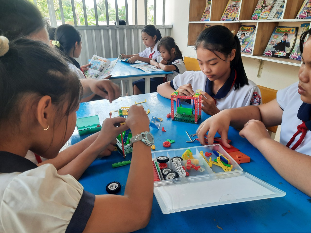 Ngoài việc được làm quen và hướng dẫn chơi các trò chơi dân gian như: kéo co, bịt mắt bắt dê, ăn ô quan, nhảy lò cò, nhảy dây,…các em học sinh còn được trải nghiệm, thể hiện sự thông minh, sáng tạo của mình như: thực hành làm các sản phẩm khéo tay hay làm từ các môn học hàng ngày như Mỹ thuật, thủ công, kỹ thuật như: Làm thiệp, làm mô hình yêu thích, đọc sách…
