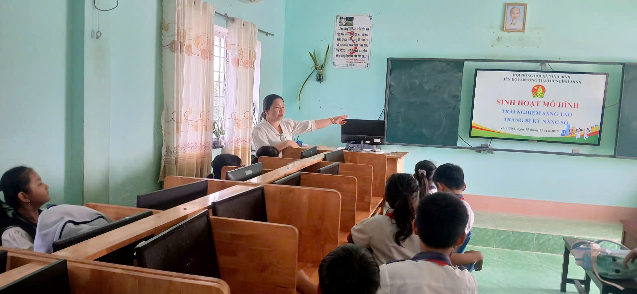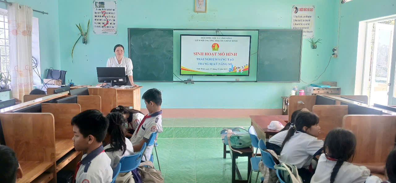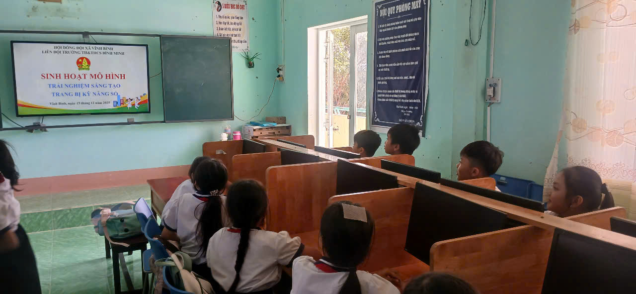 Thực hiện chương trình công tác Đội và phong trào thiếu nhi năm học 2025 – 2026, ngày 15/12/2026, Liên đội Trường TH&THCS Bình Minh đã tổ chức hoạt động “Mô hình trải nghiệm sáng tạo – Trang bị kỹ năng số cho thiếu nhi”.