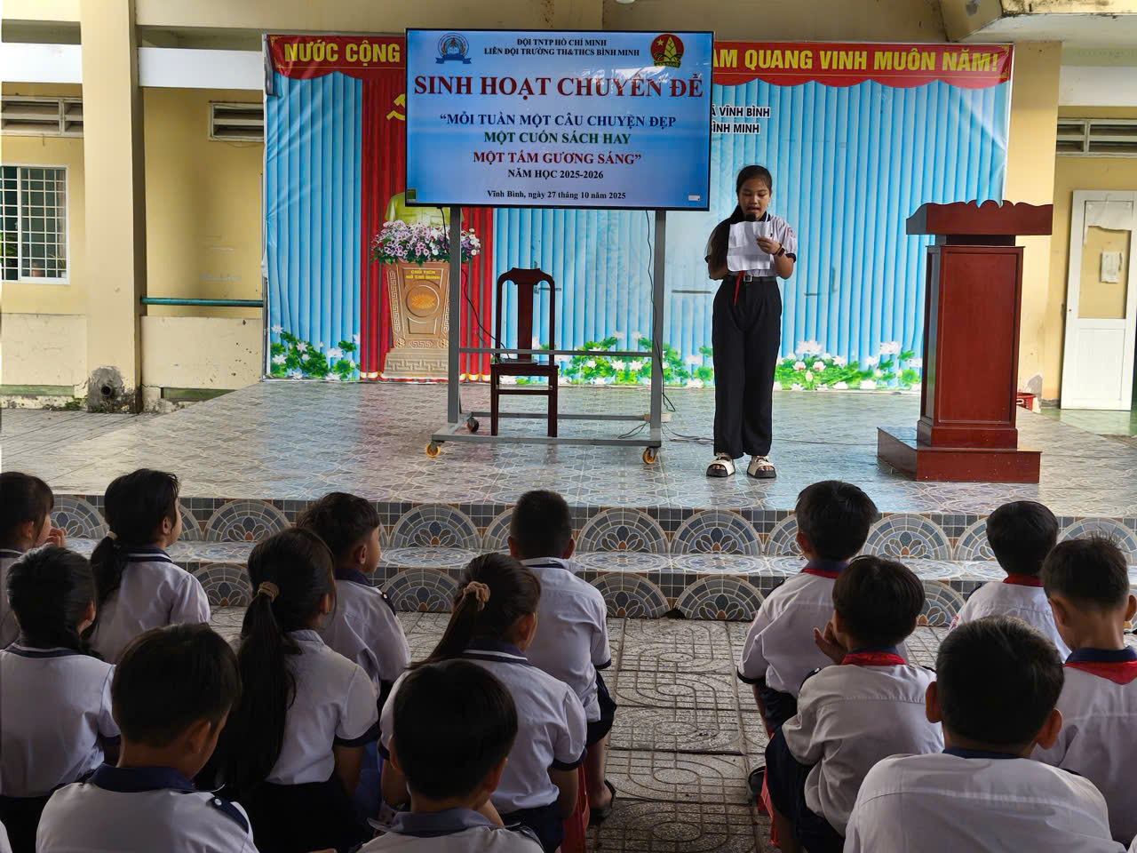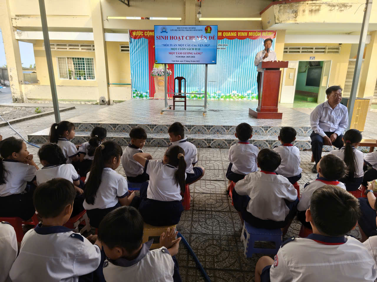 Dưới đây là một số hình ảnh tiêu biểu trong các buổi sinh hoạt chuyên đề “Mỗi tuần một câu chuyện đẹp, một cuốn sách hay, một tấm gương sáng” năm học 2025 – 2026