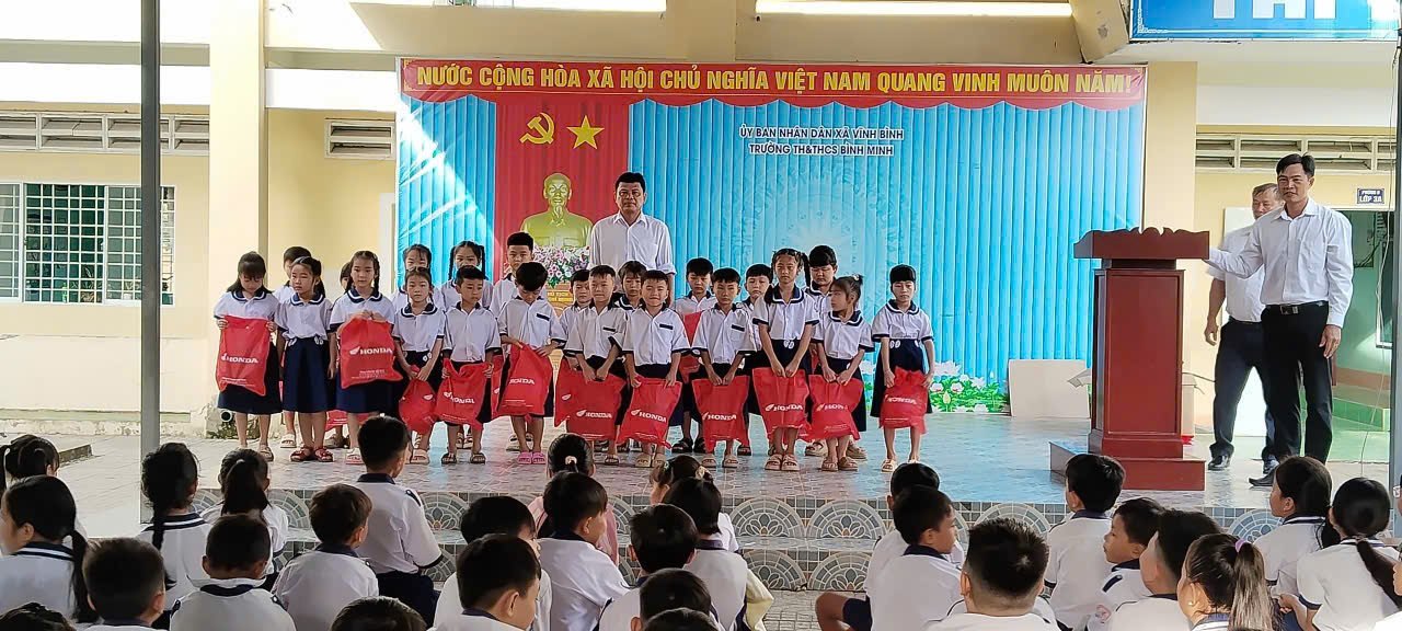 Vừa qua, Trường TH&THCS Bình Minh phối hợp cùng Công ty Honda tổ chức chương trình trao tặng nón bảo hiểm cho học sinh khối 1. Hoạt động nhằm nâng cao ý thức chấp hành luật giao thông và bảo vệ an toàn cho các em khi tham gia giao thông. Chương trình diễn ra trong không khí vui tươi, ý nghĩa, góp phần lan tỏa thông điệp “Đội mũ bảo hiểm cho con – trọn vẹn yêu thương”.